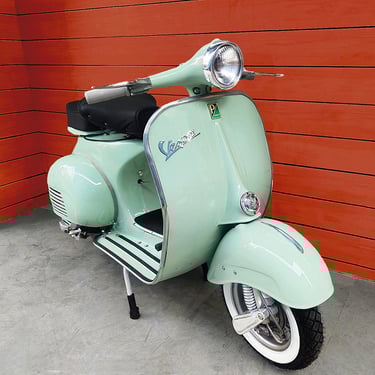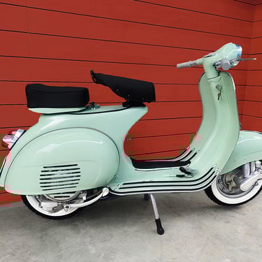 A true classic Vespa model in very good condition, ready to ride and enjoy as the perfect daily driver scoot. Mechanicals are in great shape and this happy Vespa starts, runs and rides well. This is a San Francisco scoot with a good local service history. A new Vespa crate motor was installed several years ago along with a major service. Recent maintenance was performed at SF Scooter Center and this bike is up to date on service. This Vespa VBB features a four speed transmission. It is fitted with electronic ignition for sure starts and new tires for a smooth ride. We performed a tune up and took care of some cosmetic issues and details.